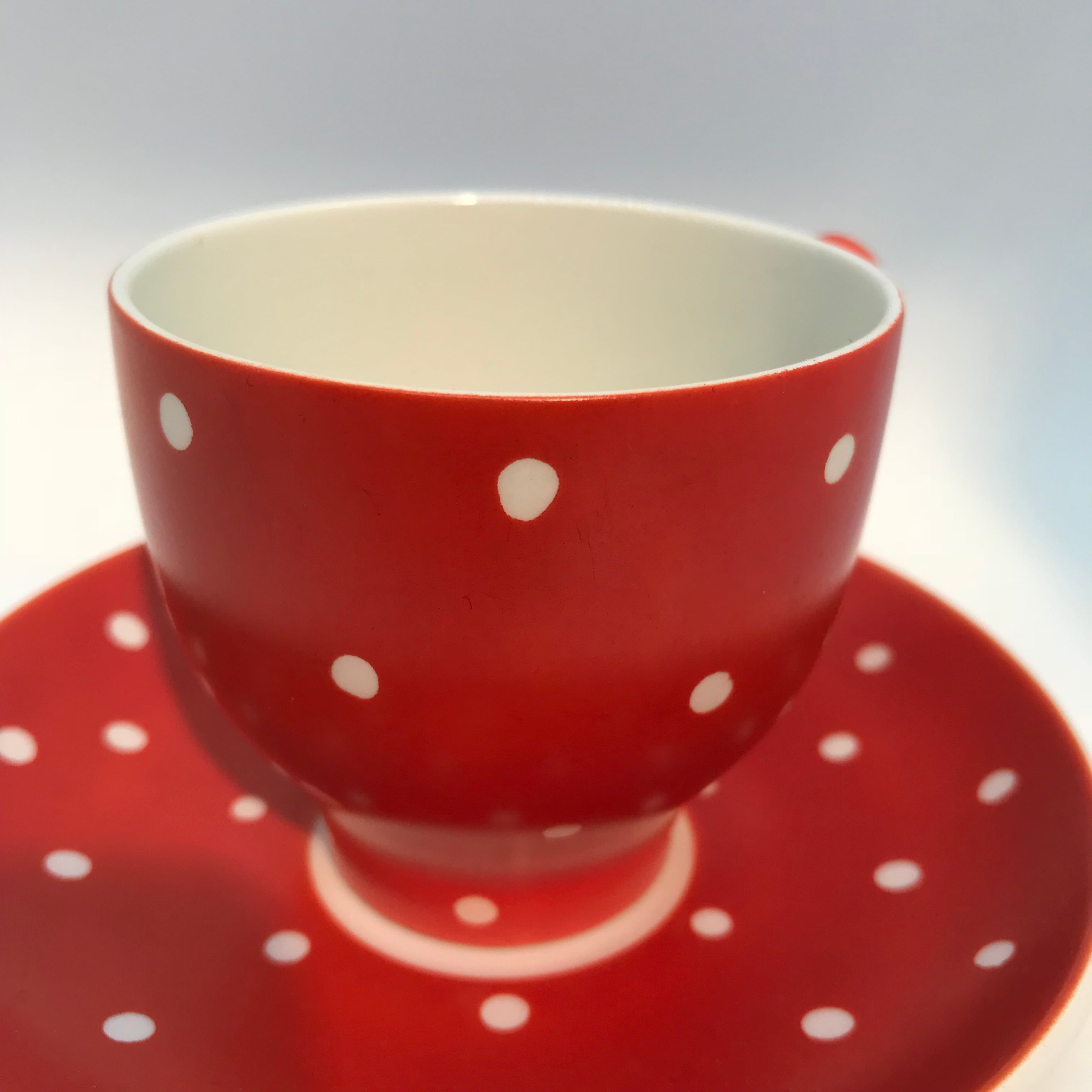 「アマニタ」とはキノコの一種を意味し、赤に白のドット柄はまさに森に佇む可愛らしいキノコそのもの。約70年前に制作されたとは思えない、現代でも色褪せないポップでモダンなデザインが食卓を明るく彩ります。